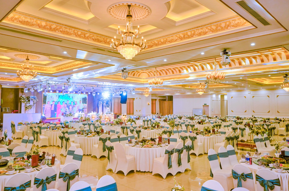 Sảnh Hoàng Gia với kích thước sảnh 1000 m2 được bày trí theo phong cách Châu Âu sang trọng có sức chứa từ 65 đến 70 bàn tiệc trên nền vàng ấn tượng. Diện tích sảnh có thể mở rộng linh hoạt với sức chứa lên đến 750 khách (75 bàn) nhằm đáp ứng cho nhiều hình thức và nhu cầu đặt tiệc khác nhau.